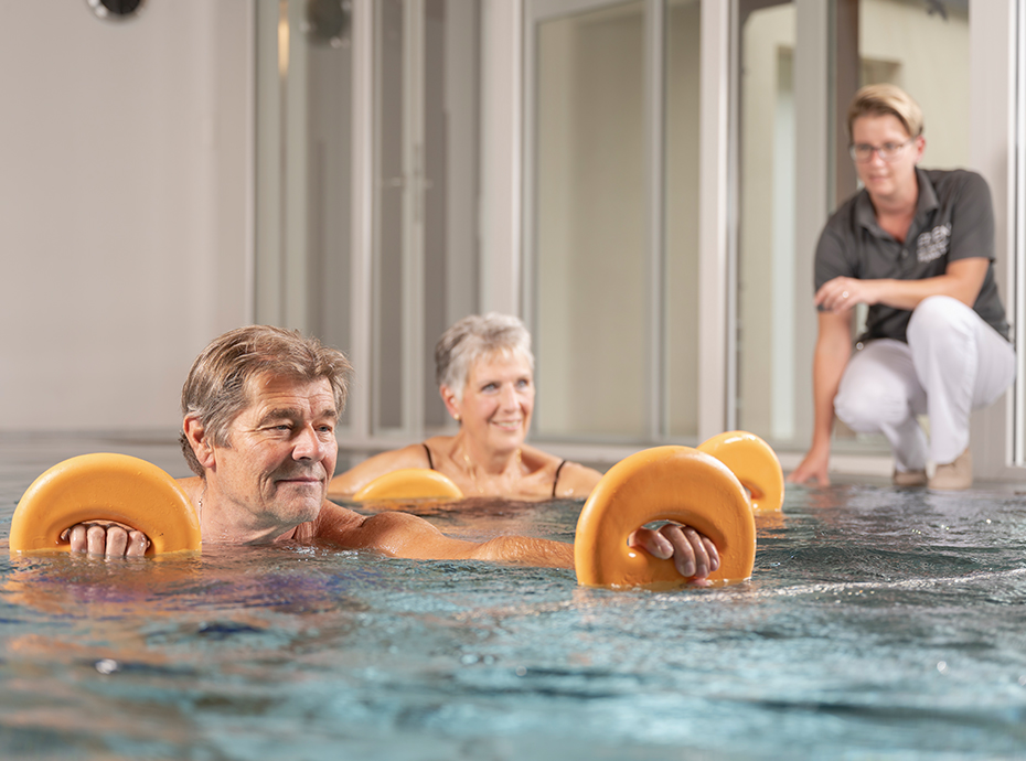 Im Mittelpunkt stehen aktive Therapien, die Mobilität, Muskelkraft und Koordination fördern. Dazu gehören die allgemeine Physiotherapie, die medizinische Trainingstherapie mit Übungen im Fitnessraum sowie Einheiten im 32 Grad warmen Therapiebad.