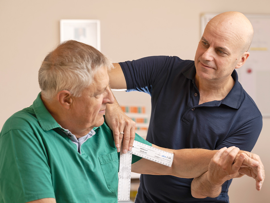 Nach einer sorgfältigen Befundaufnahme erstellt unser interdisziplinäres Team aus Ärzt:innen und Therapeut:innen Ihr persönliches Rehabilitationsprogramm. Es wird auf Diagnose, Eingriff und individuelle Bedürfnisse abgestimmt und in enger Abstimmung mit dem Therapie- und Pflegeteam sowie dem zuweisenden Spital koordiniert.