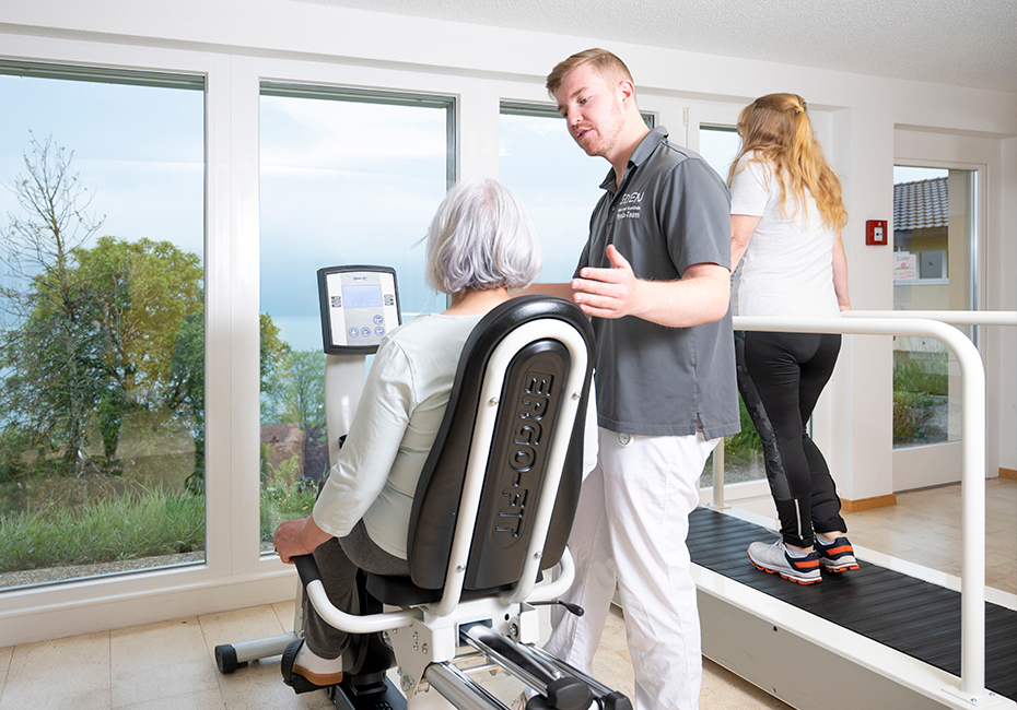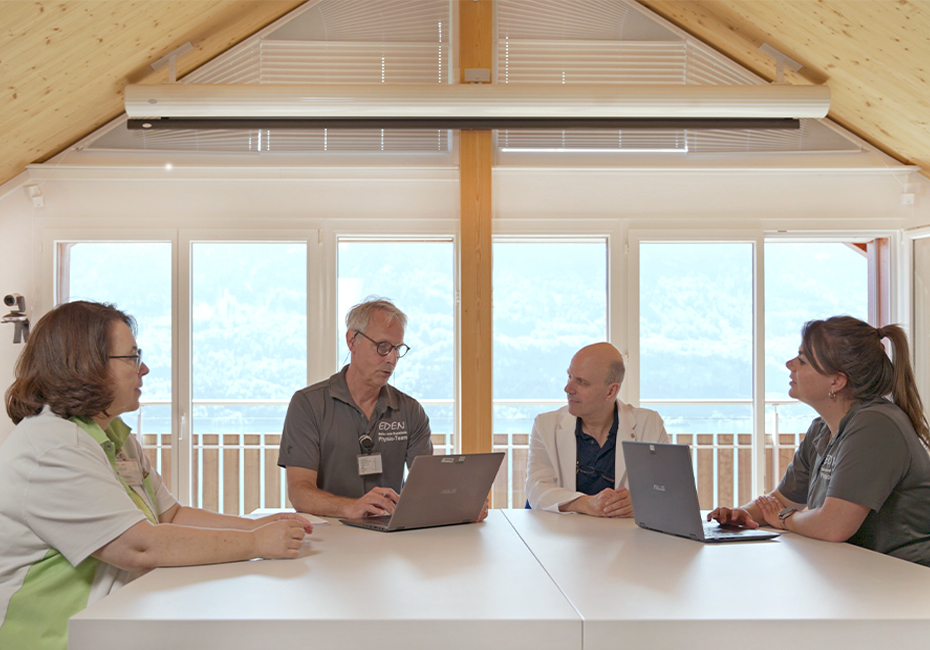 Die enge Zusammenarbeit der verschiedenen Fachrichtungen ist ein zentraler Bestandteil unseres Rehakonzepts. Ärzt:innen, Pflegefachpersonen, Physiotherapeut:innen, medizinische Masseur:innen, Sportwissenschaftler:innen und weitere Spezialist:innen arbeiten Hand in Hand. Regelmässige Fallbesprechungen und individuelle Therapieanpassungen sichern eine zielgerichtete Rehabilitation.